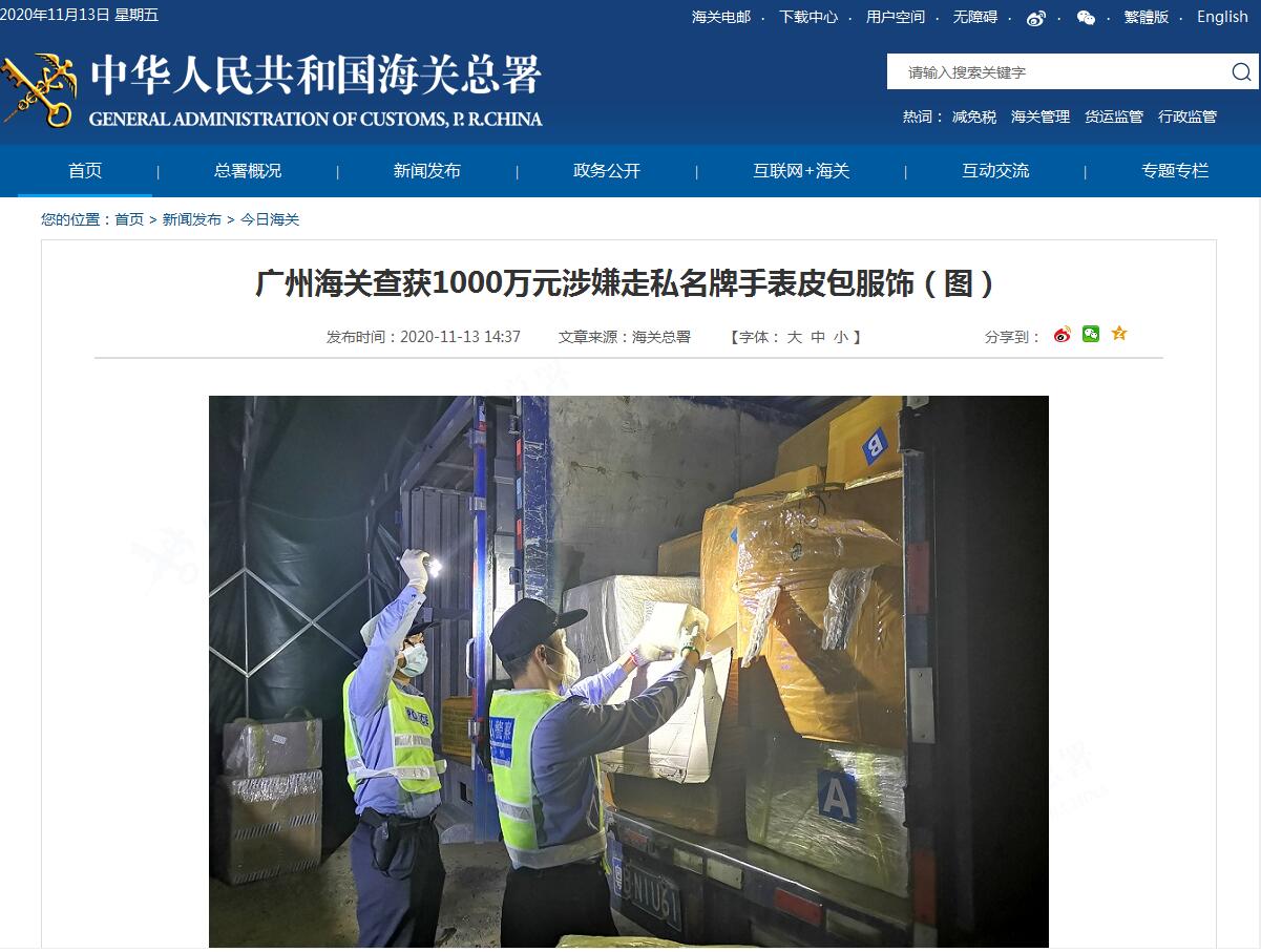 海關總署官網今日刊文指,近日,廣州海關所屬大鏟海關緝私分局查獲涉嫌走私的名牌手錶、皮包、化妝品、服飾、電子產品、藥品以及植物(含95株瀕危類植物)、螞蟻活體等共135箱,涉案貨值約1000萬元人民幣。