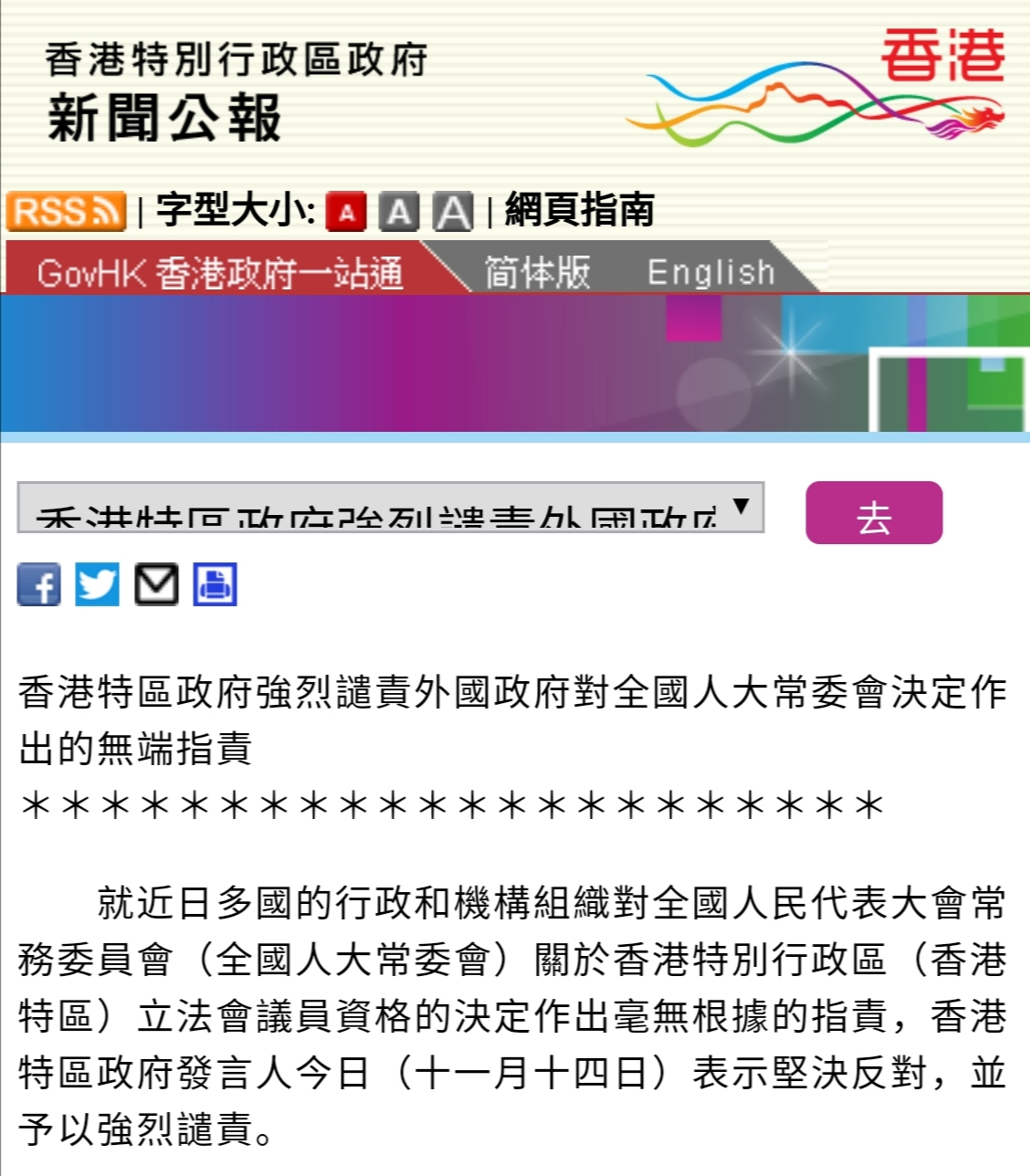 香港政府新闻网截图