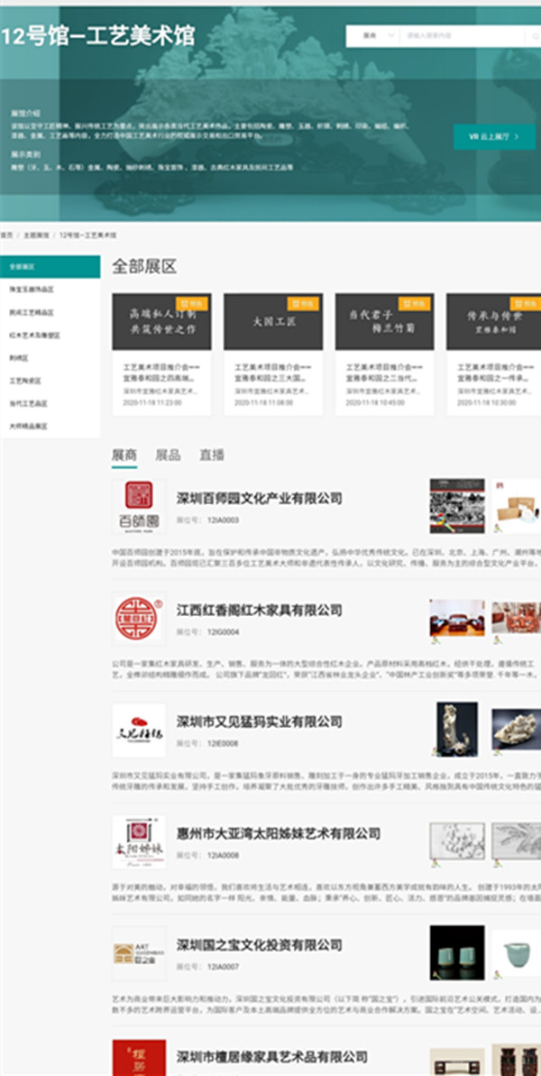 圖為文博會12號館工藝美術館的官網頁面