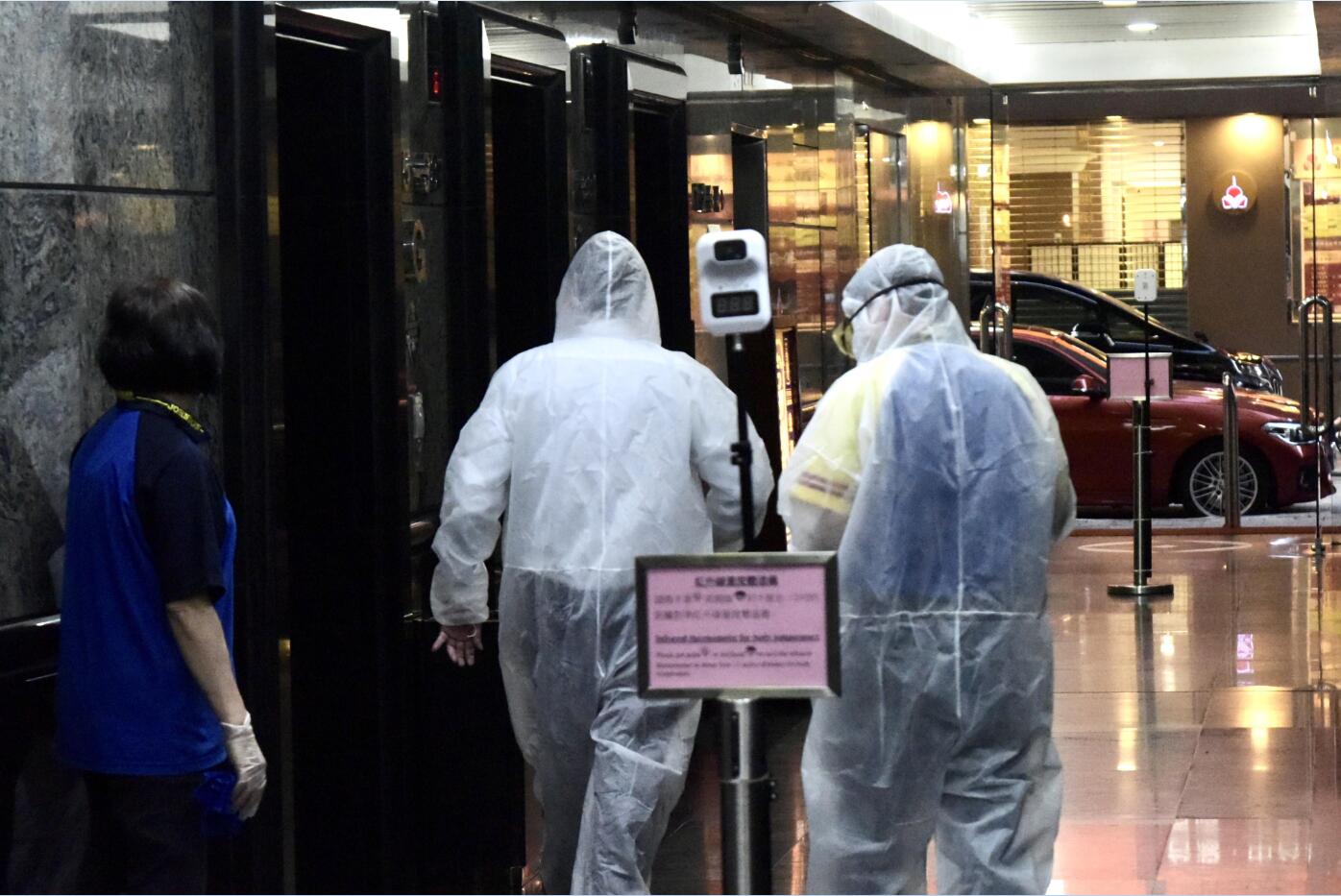 19日有多位初步確診者曾到訪灣仔一舞蹈教室,教室所處大廈內有人員進行清潔。中新社