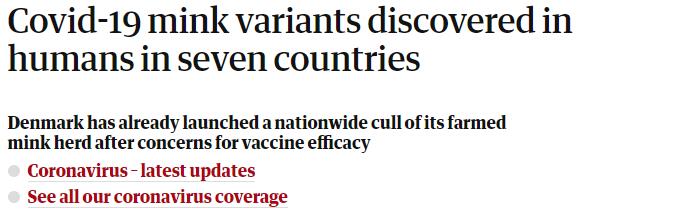 據報道,丹麥、荷蘭、南非、瑞士、法羅群島、俄羅斯和美國都報告了與水貂相關的變種病毒感染病例。