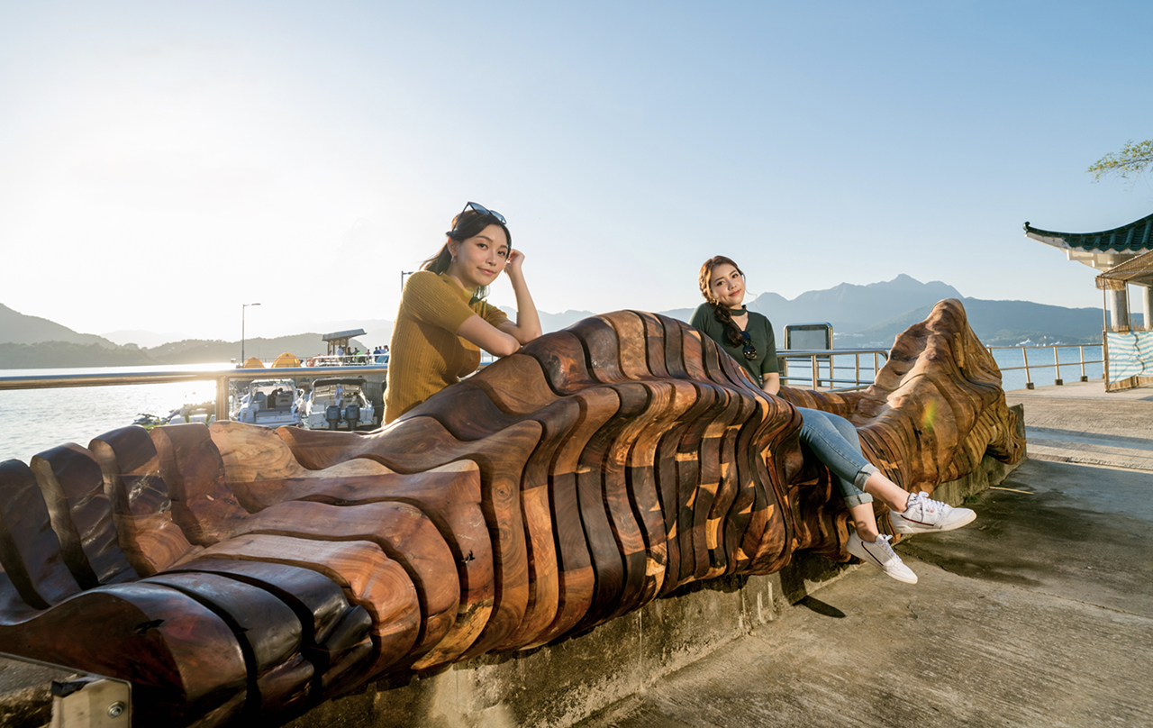 旅遊事務署於鹽田梓舉辦「鹽田梓藝術節2019」,本地藝術家與村民共同創作,以「山竹」塌樹升級再造而成的木雕椅《流波·行雲》。