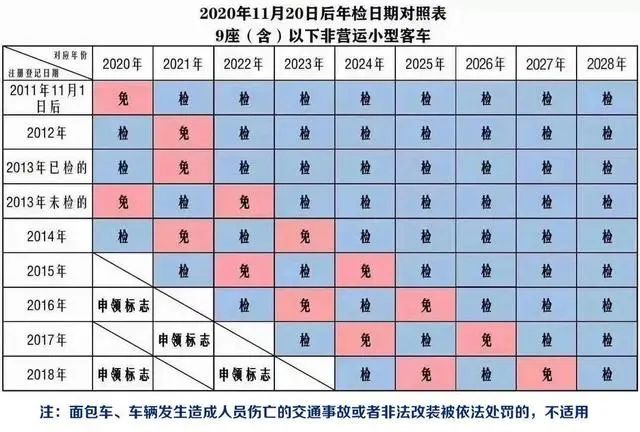 此外,對超過6年不滿10年的非營運小微型客車(麵包車除外),檢驗周期由每年檢驗1次放寬至每兩年檢驗1次。