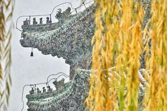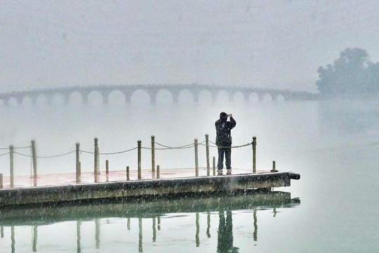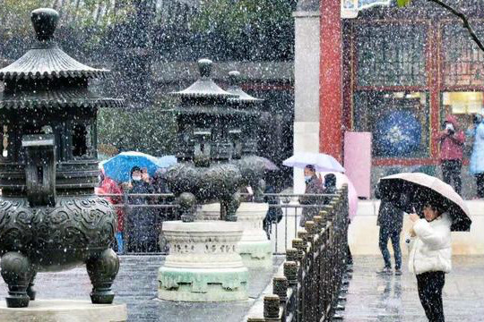 今天(21日)北京迎來今冬初雪,在頤和園景區,漫天飛雪映襯紅牆金瓦和園中山水成為一幅迷人的畫卷,不少市民遊客冒雪前來賞景,留下初雪美好記憶。