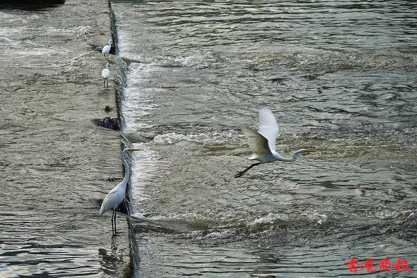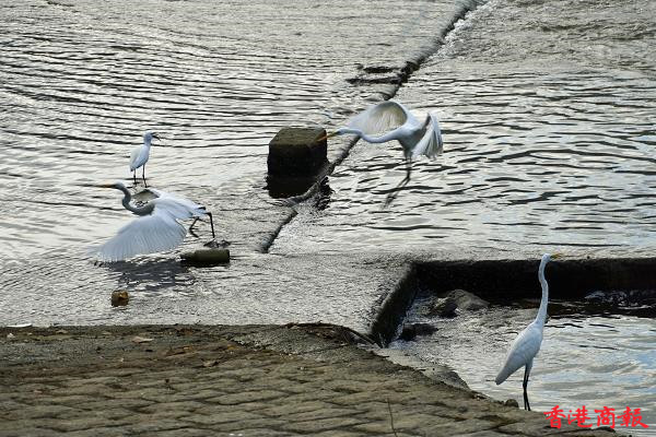 在沙田城門河一帶,白鷺足跡處處,種類也有不同。白鷺屬鷺科鳥類的統稱,其中大白鷺、中白鷺、小白鷺、黃嘴白鷺和雪鷺的羽毛都是全白色,繁殖期會長出絲狀的繁殖羽。白鷺們的長相和習性都差不多,長腿長嘴。白鷺以各種小魚、蛙類、蝦、昆蟲等動物作為食糧,也有吃少量穀物等植物。白鷺出沒的地方,也會吸引路人停下觀看,及一些攝影發燒友拍攝牠們的動態。(記者 馮俊文攝)