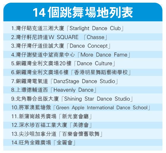 14間指明跳舞場所。資料來源:食物及衞生局