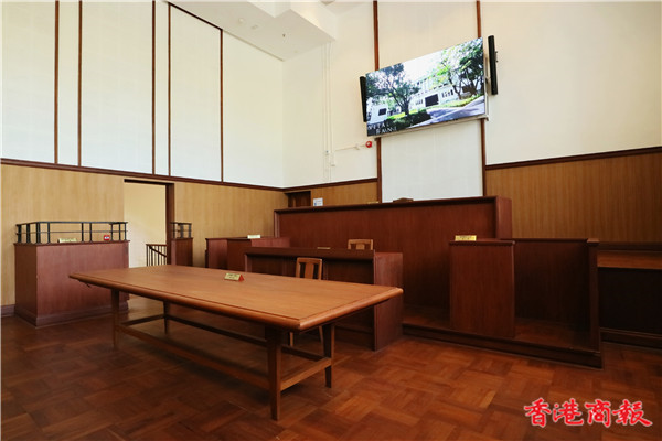 法庭內的法官席、書記席、證人席、律師席、記者席、公眾席,及犯人欄多個位置,全部開放。參觀者可以不同視角體驗法庭開庭時的感覺。(記者 馮瀚文攝)