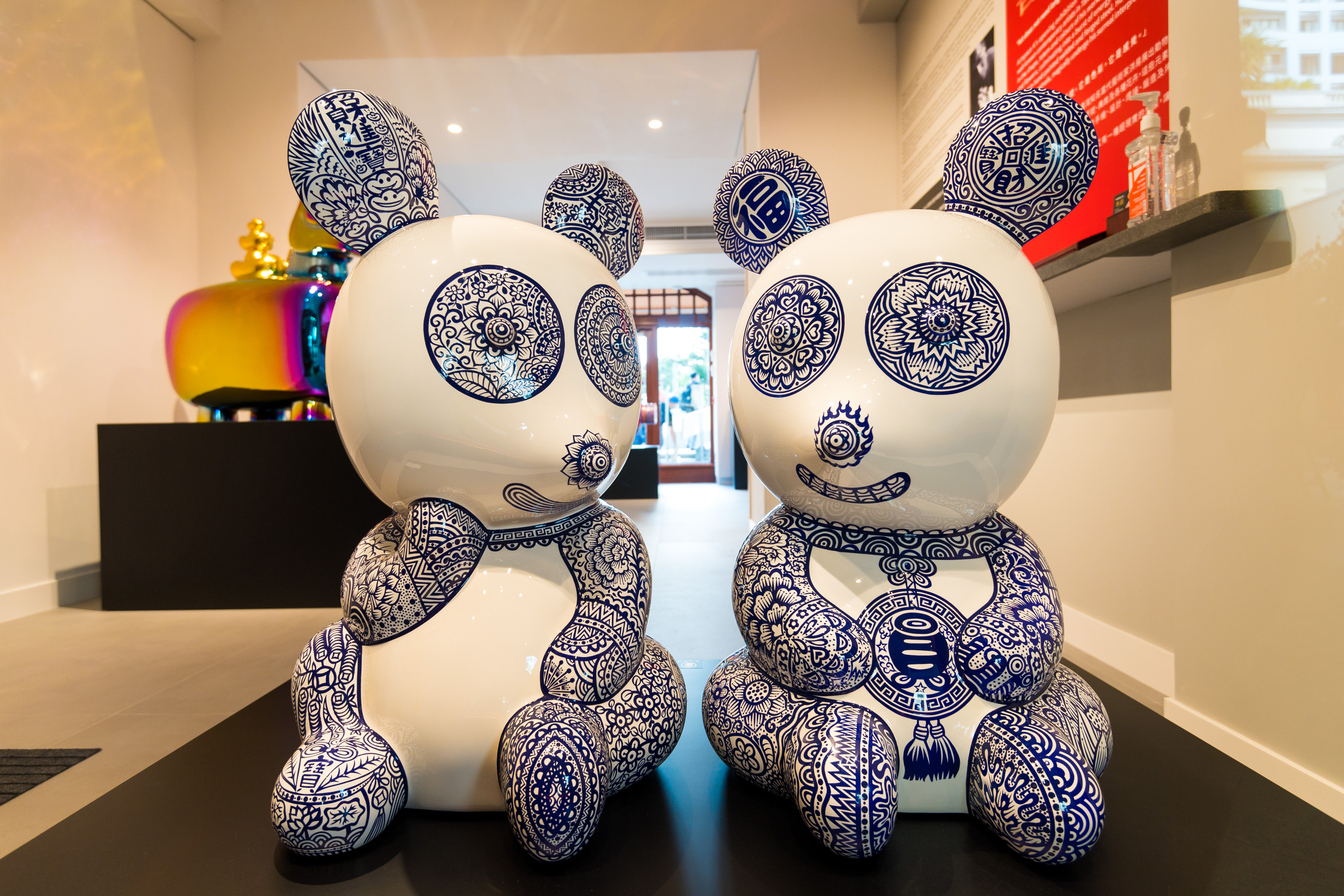 內容:「生活是藝術,藝術是生活。」不少藝術家的創作靈感都從生活而來,台灣的洪易亦如是。他認為藝術不同語言,是符號、色彩,亦是感覺,創作靈感來自傳統文化、生活習俗、符號及各種花卉等元素,是大眾熟悉的事物。現正舉辦的「冬喜——洪易藝術個展」展示他的雕塑及油畫作品共15 件,展品以色彩繽紛、造型圓融及溫暖的動物為主題,每件展品的圖案、顏色均蘊藏傳統文化、歷史典故及花卉造型,如《梅花鹿》,圓渾的身軀,布滿朵朵梅花,梅花源自網上所見的梅園照片;另一組熊貓雕塑展品則是「青花紋」樣,仔細看還能發現「招財進寶」、「福」等傳統字樣,饒富趣味。