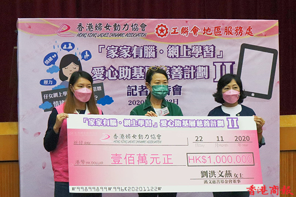 香港婦女動力協會指,新冠肺炎疫情持續,學生只能透過網上學習去追趕進度,而協會發現許多基層家庭因經濟條件較差而未能負擔「電子學習」費用。因此香港婦女動力協會與工聯會地區服務處於5月份推出「家家有腦‧網上學習」愛心助基層慈善計劃,向逾500戶基層學童家庭提供平板電腦器材及為期3個月的網上服務。
