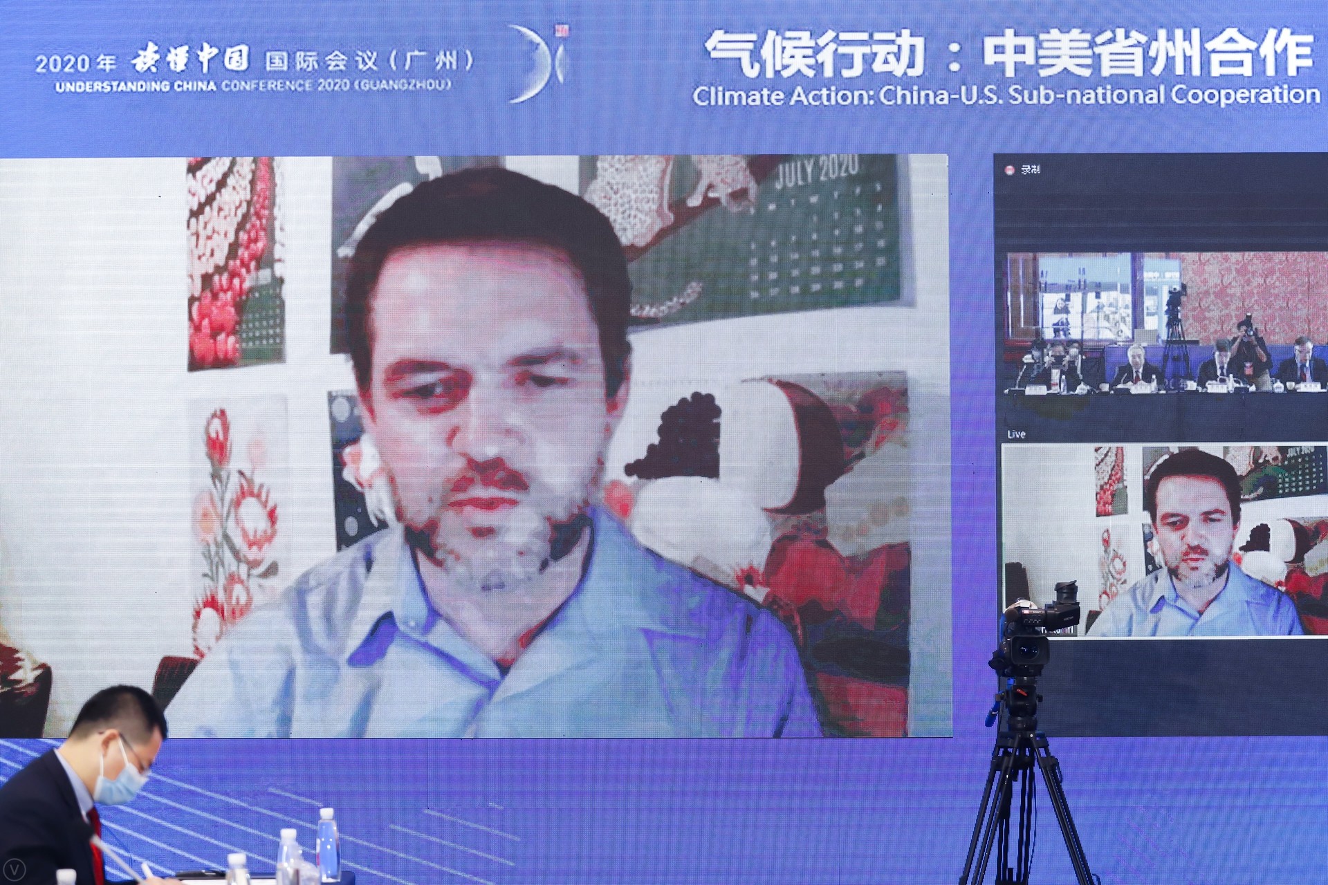 美國加州和廣東省是友好省州,雙方開展了一系列卓有成效的合作,涉及低碳發展、貿易、文化、教育等多個領域。廣東省副省長覃偉中在發言中表示,廣東與加州友誼源遠流長、合作基礎紮實,在應對氣候變化領域合作空間廣闊。兩省州2014年在三藩市正式締結友好省州關係,當時正是傑里•布朗先生與時任廣東省省長朱小丹先生簽署的締結友好省州關係協議,雙方會晤的重要話題就是低碳發展和清潔能源。新形勢下,我們將在中國應對氣候變化國家方案的指引下,加強與美國對話交流,期待與加州朋友一道,就應對氣候變化、疫情後經濟復蘇等議題開展合作與交流,為推動全球氣候治理、實現疫情後綠色高質量復蘇,為促進中美兩國及世界經濟的共同繁榮作出貢獻。
