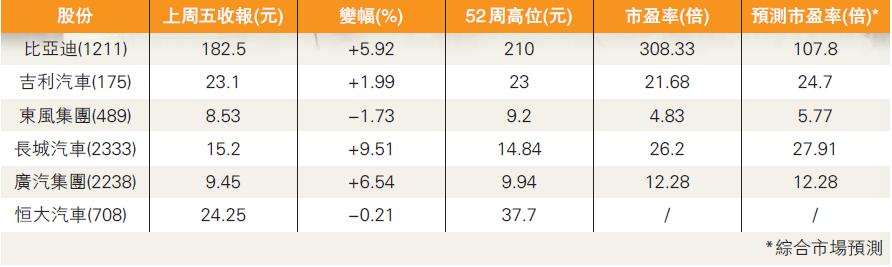 文件出台後,新能源汽車生產商強者越強,比亞迪(1211)和吉利汽車(175)帶頭急升,升勢亦最明顯,連帶部分傳統汽車股及電池股也造好。除了受惠中央文件政策消息,比亞迪和吉利各自都有好消息帶動。其中,吉利汽車母公司吉利控股旗下電動車品牌Polestar,有傳正計劃融資最多9億美元。另外,比亞迪第三季盈利按年大增13.62倍,並預期全年盈利最多增逾1.8倍,又預計第四季汽車行業持續向好,新能源汽車銷量穩步增長。