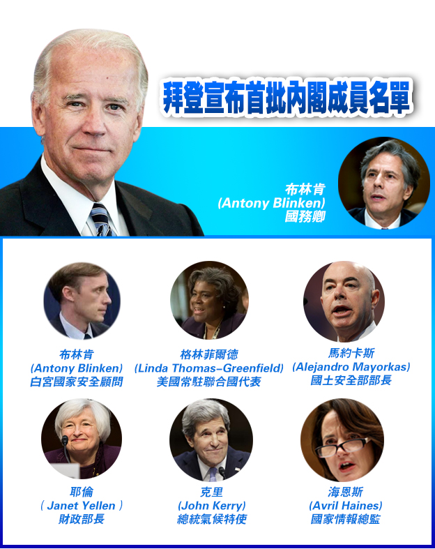 據環球網援引美國霍士新聞消息,當地時間23日,美國「當選總統」拜登宣布一系列內閣成員名單。