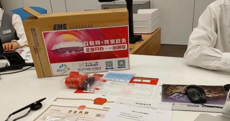 二是跑腿次數少,實時打通各部門系統,由郵政EMS配送,可查詢物料流轉全過程,申請人可以到政務大廳一次性領取營業執照、公章、發票、稅控Ukey等所有辦理結果。