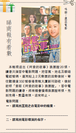 由葉念琛執導,王菀之、姜皓文、梁漢文及林盛斌(Bob)主演的電影《阿索的故事》,以人生轉變為題材。王菀之飾演的女主角阿索,經歷失意、失戀、失業成為「三失」中女,但性格樂天的她,沒有自暴自棄,反而在人生交叉點裏絕境逢生,交織成疫情下一個充滿正能量的溫馨故事。(文:雲遜)