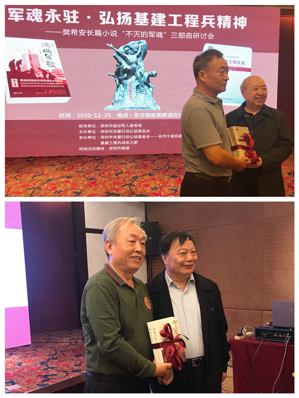 11月25日上午,由深圳市退役軍人事務局指導,深圳市關愛行動公益基金會主辦,深圳市關愛行動公益基金會——拓荒牛復明基金、基建工程兵戰友之家承辦的樊希安「不滅的軍魂」三部曲研討會,在深圳東方銀座美爵酒店召開。