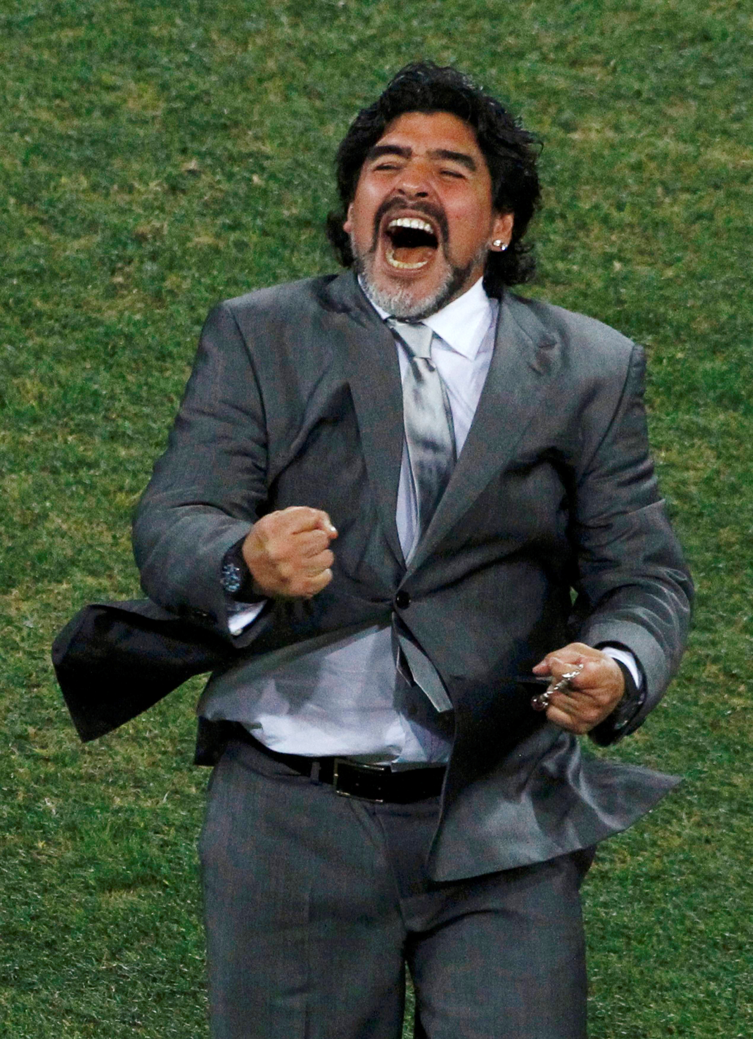 他之後以一人之力獨闖英格蘭腹地,扭過5個英軍守將後射入傳頌至今的世紀金球,領軍2:0贏波出線。他在四強對比利時再入兩球,決賽被西德全場緊盯下,仍成功在完場前交出助攻,為阿根廷奠定3:2勝局並第二度奪得世界盃,鎖定超級巨星地位。(圖源:路透社)
