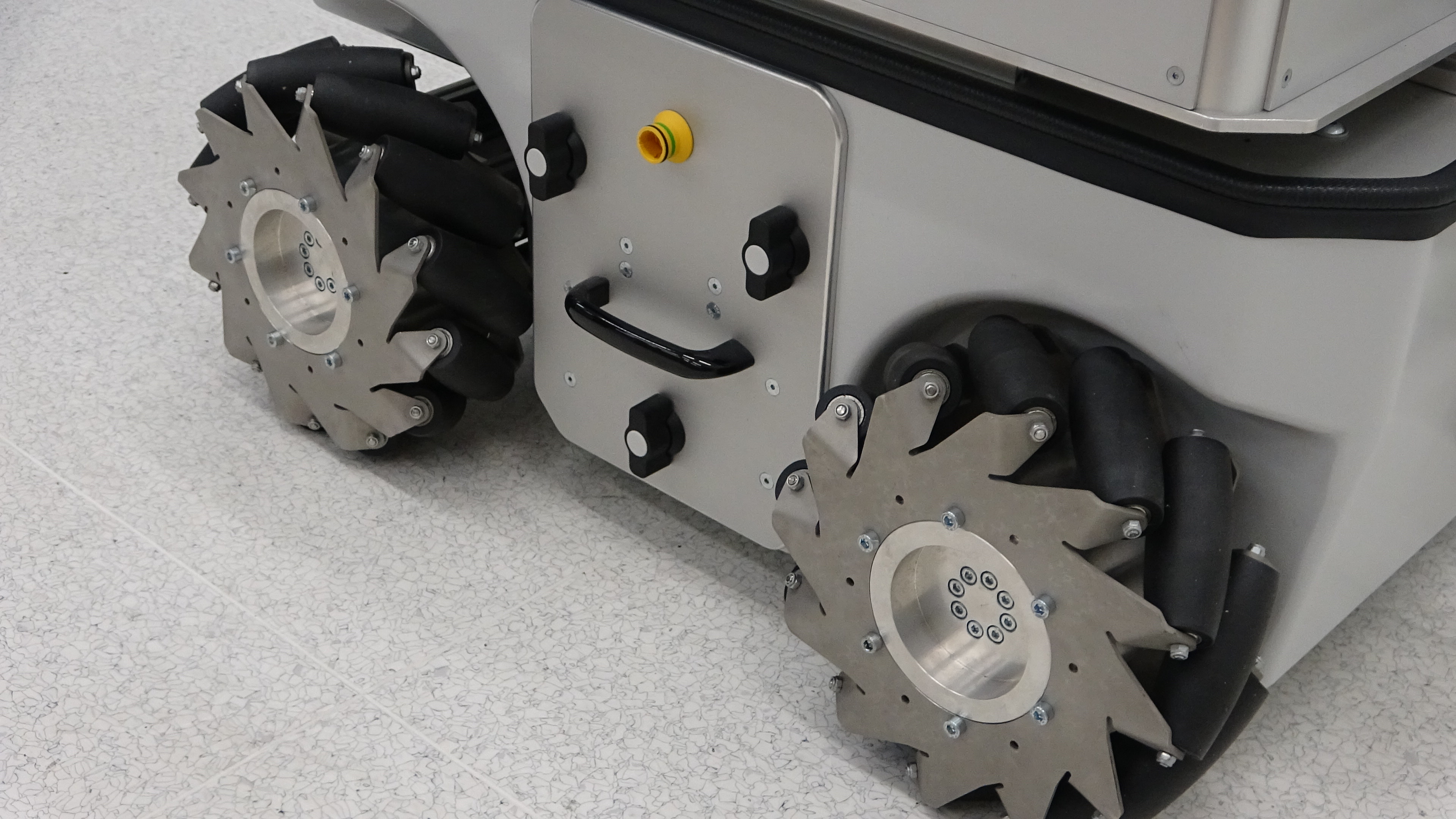 機械臂底座的四個車輪可橫向移動,靈活性高。