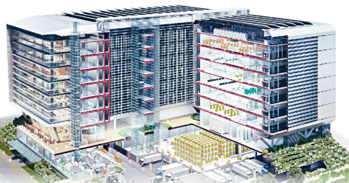 先進製造中心AMC概念圖,利用組裝合成建築法興建。(香港科學園官網圖片)