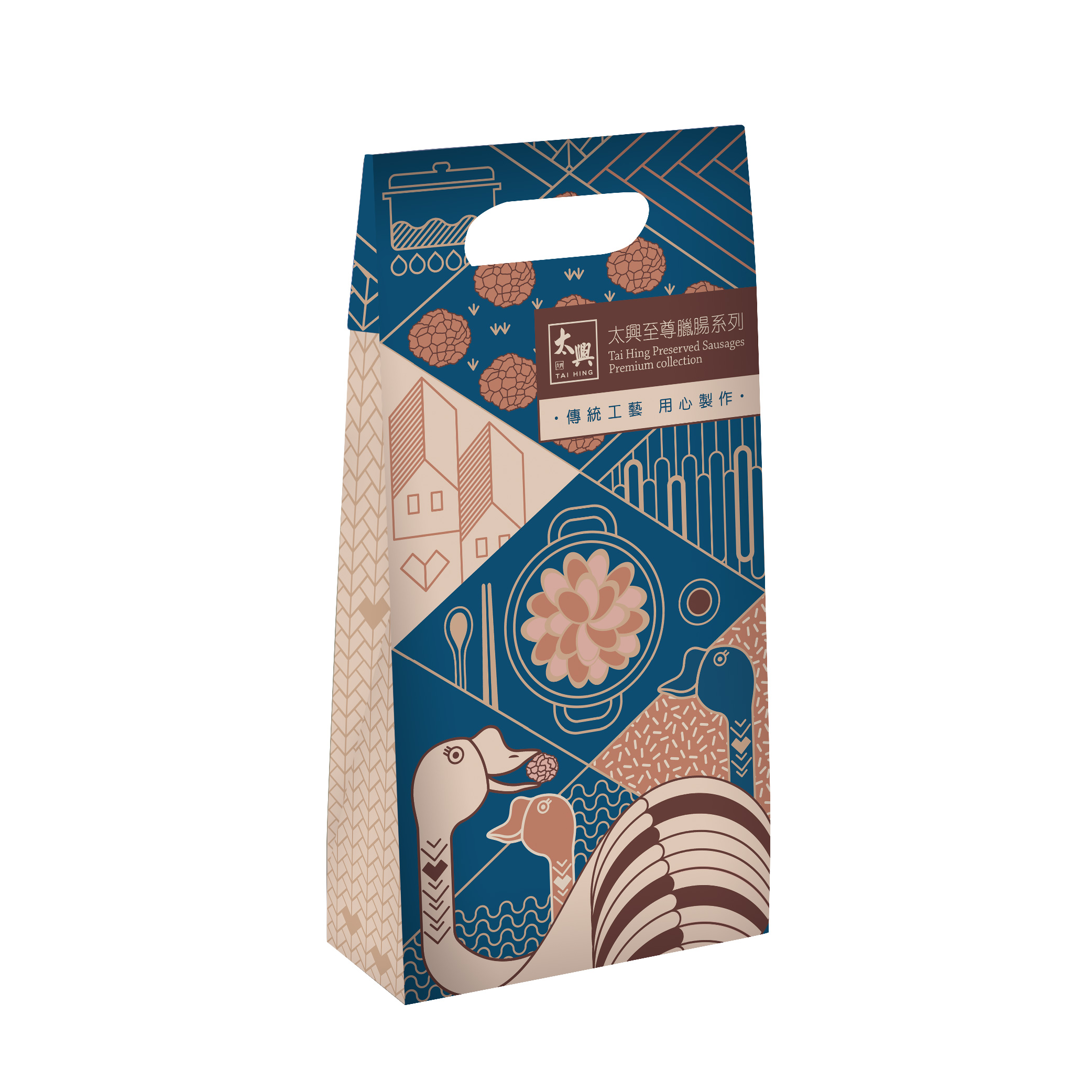 太興自設廠房製造的臘腸,每包均獨立包裝,選擇新鮮優質豬肉製成鮮臘腸,整體口感豐富。今年更推出新口味「黑松露鵝肝腸」,中西合璧,非常新奇。