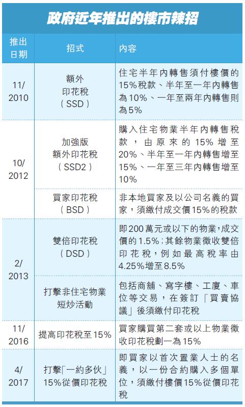新一份施政報告未有如市場預期放寬按保,亦未有對住宅「減辣」,僅撤銷非住宅物業的雙倍從價印花稅,令市場失望,認為辣招將會窒礙市民入市,惟政府無意進一步減辣。運輸及房屋局局長陳帆昨日表示,政府密切留意物業市場發展,目前看不到任何數據或事實支持,改變需求、投資或炒賣管理措施。財經事務及庫務局局長許正宇則指,目前是適當時間撤銷非住宅物業雙倍印花稅,方便業主套現物業周轉。