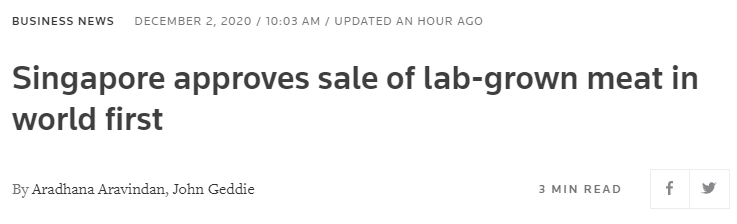 開吃網2日表示:「這是世界上首個允許人類安全食用的由畜禽細胞製成的真正的、高質量肉類的監管許可,這為即將在新加坡小規模銷售鋪平了道路。」它還表示將在新加坡生產該產品,並計劃開始在美國商業銷售以綠豆為基礎的雞蛋代用品。