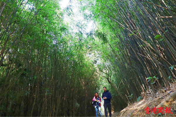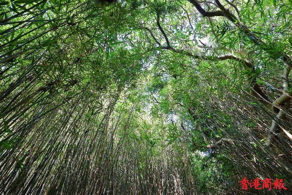 河背水塘另一特色,就是其中一段路的小竹林,被譽為港版「日本京都嵐山竹林」,茂密的竹林透著絲絲陽光,竹葉被風吹得沙沙作響, 置身其中可暫忘疫情帶來的煩憂。(馮瀚文 攝)