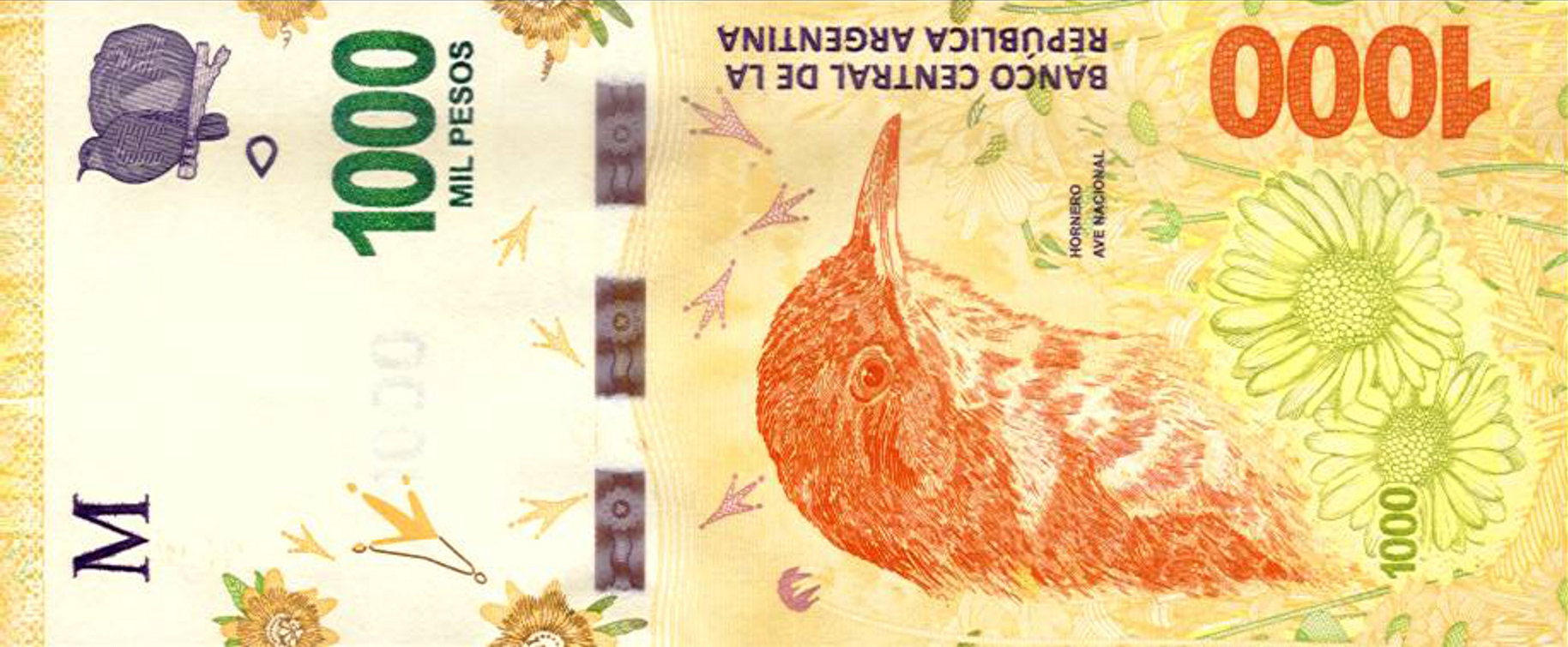 阿根廷現行的1000比索紙幣上,印著的是國鳥——棕灶鳥。