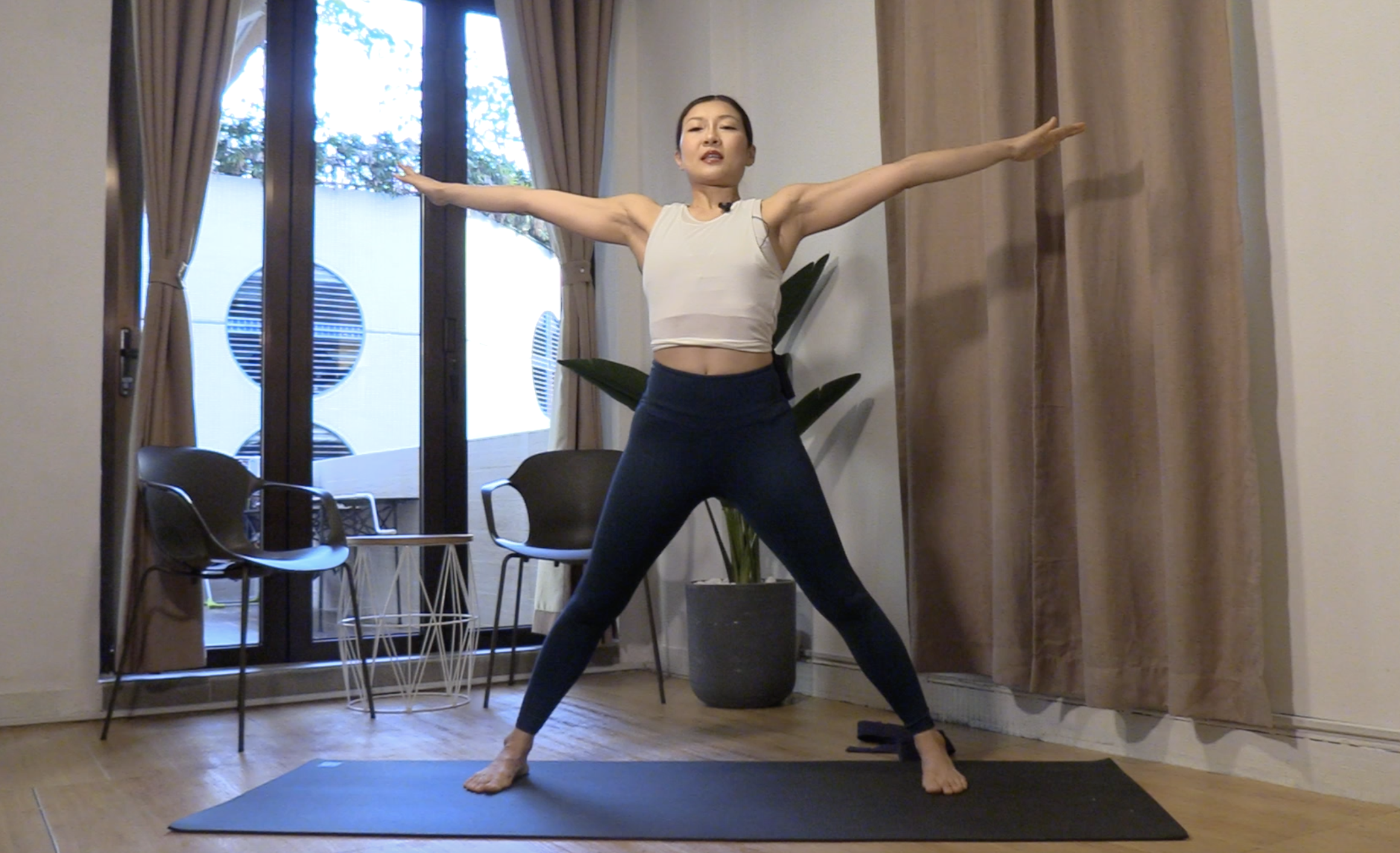 做法:呈跪姿狀,一隻腳跨向前,約兩呎半至三呎半的距離,膝蓋與腳踭成一直線,雙手放在大腿上,收緊臀部肌肉,注意背部挺直,保持3至5個呼吸,然後換邊進行,重複5組。