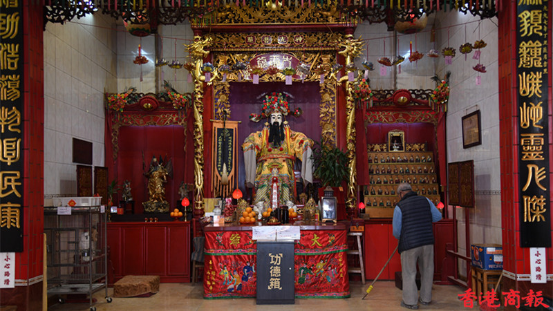 黃竹坑大王爺廟的規模較大,廟外側面建有待客廣場,每年的賀誕活動,該處可容納更多進廟參拜的善信及參與舉辦的飲宴活動。(蔡啟文 攝)