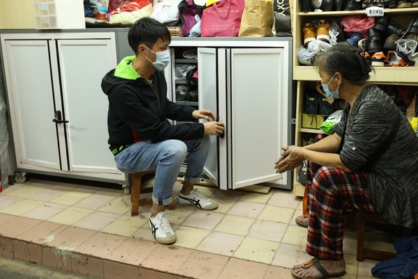 市建局為福嫂訂造一個鐵櫃,讓她妥善存放鞋履和工具。