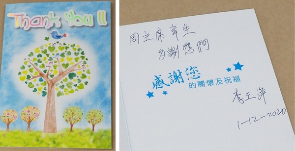 福嫂向市建局主席周松崗和行政總監韋志成送贈感謝卡,表達謝意。