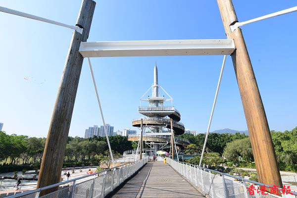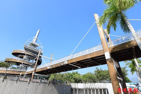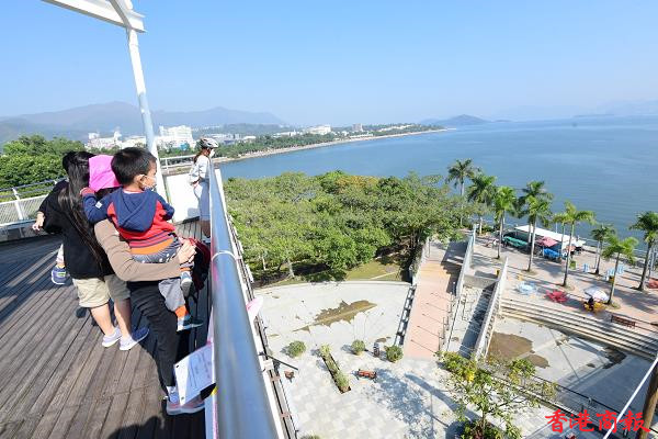 登上回歸紀念塔的瞭望台,可遠眺整個吐露港及馬鞍山景色,又可一望無際海濱公園內的花海,在寒涼冬天陽光閃耀下一嘆這景色,確是賞心樂事。(記者 崔俊良攝)