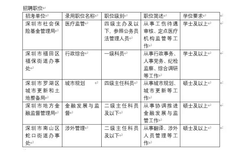 根據該公告,此次公務員招錄,深圳圍繞粵港澳大灣區和中國特色社會主義先行示範區建設需要,共設置五大類923個職位,共計劃招錄1069人,分為急需緊缺專業職位、市區機關職位、基層一線職位、國際化人才職位和定向港澳選拔職位。
