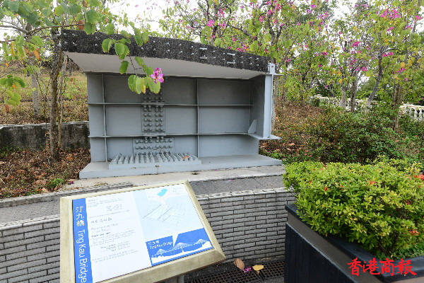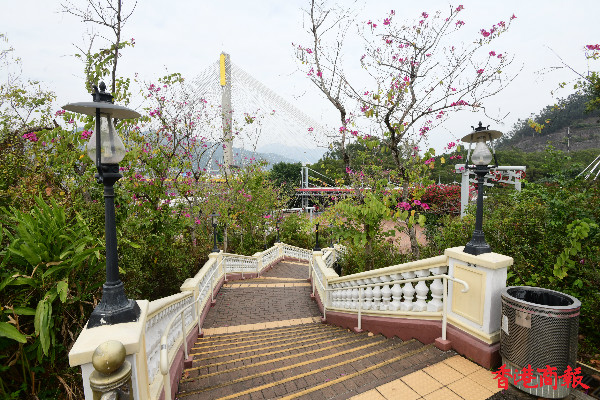 瞭望台亦設有青馬大橋及汀九橋的戶外組件,讓市民可了解當年裝嶔大橋的壯觀建築技術。在青嶼幹線訪客中心內,亦有介紹青馬大橋及青嶼幹線的建築資料。而青馬大橋的主跨長達一千三百七十七米,是往來赤鱲角香港國際機場的公路及機場鐵路重要部分。懸吊橋樑的主纜由約二萬七千噸鋼絲織成,鋼絲的總長度更可足以圍繞全球四次,青馬大橋被喻為世界上最長的道路鐵路兩用吊橋。(崔俊良 攝)