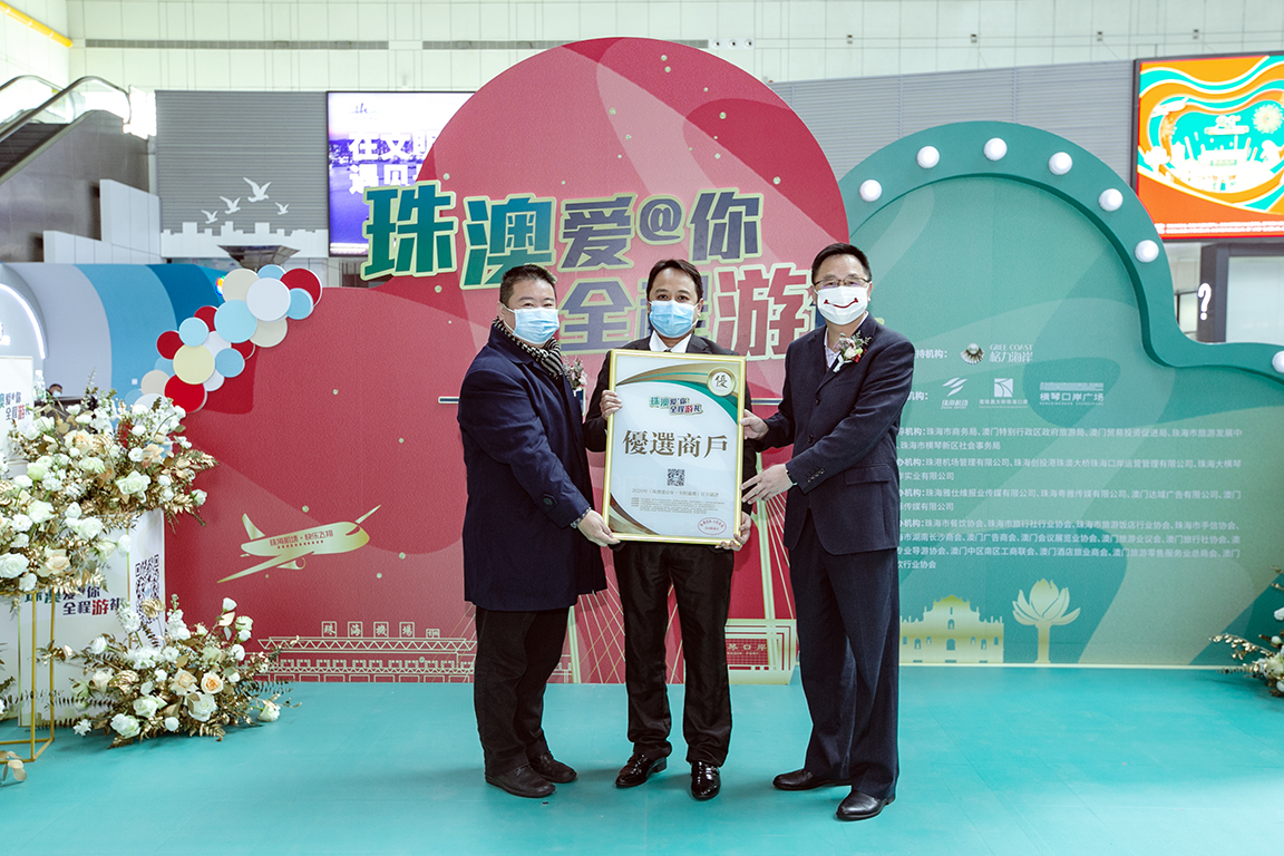 2、為參加此次活動的珠澳商家頒發「優選商戶」牌。(龍少攝)