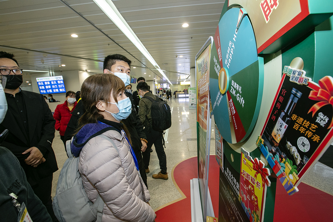 3、遊客在機場參加活動抽獎。(龍少攝)