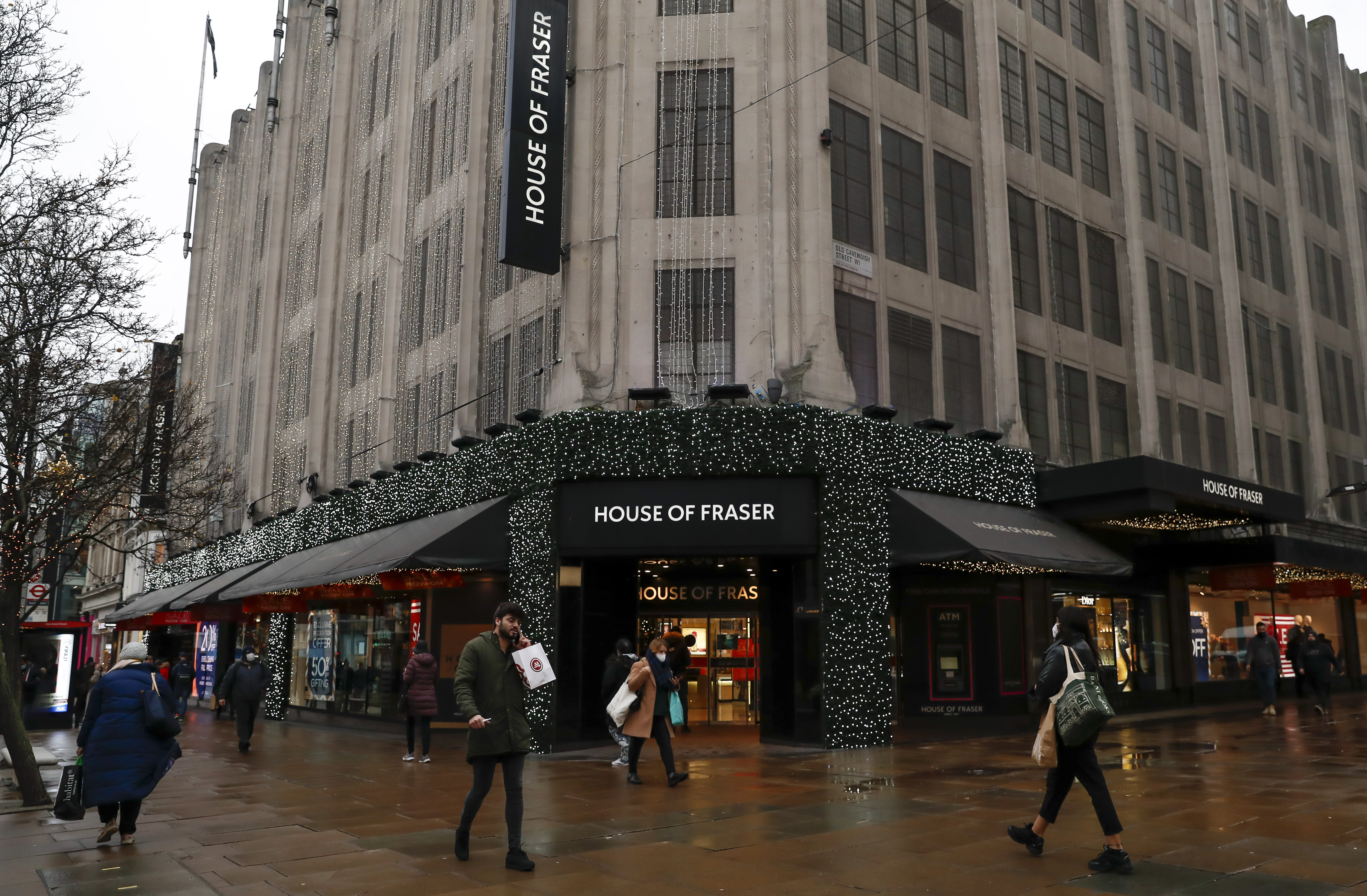 12月18日,人們從英國倫敦的弗雷澤百貨公司前走過。新華社