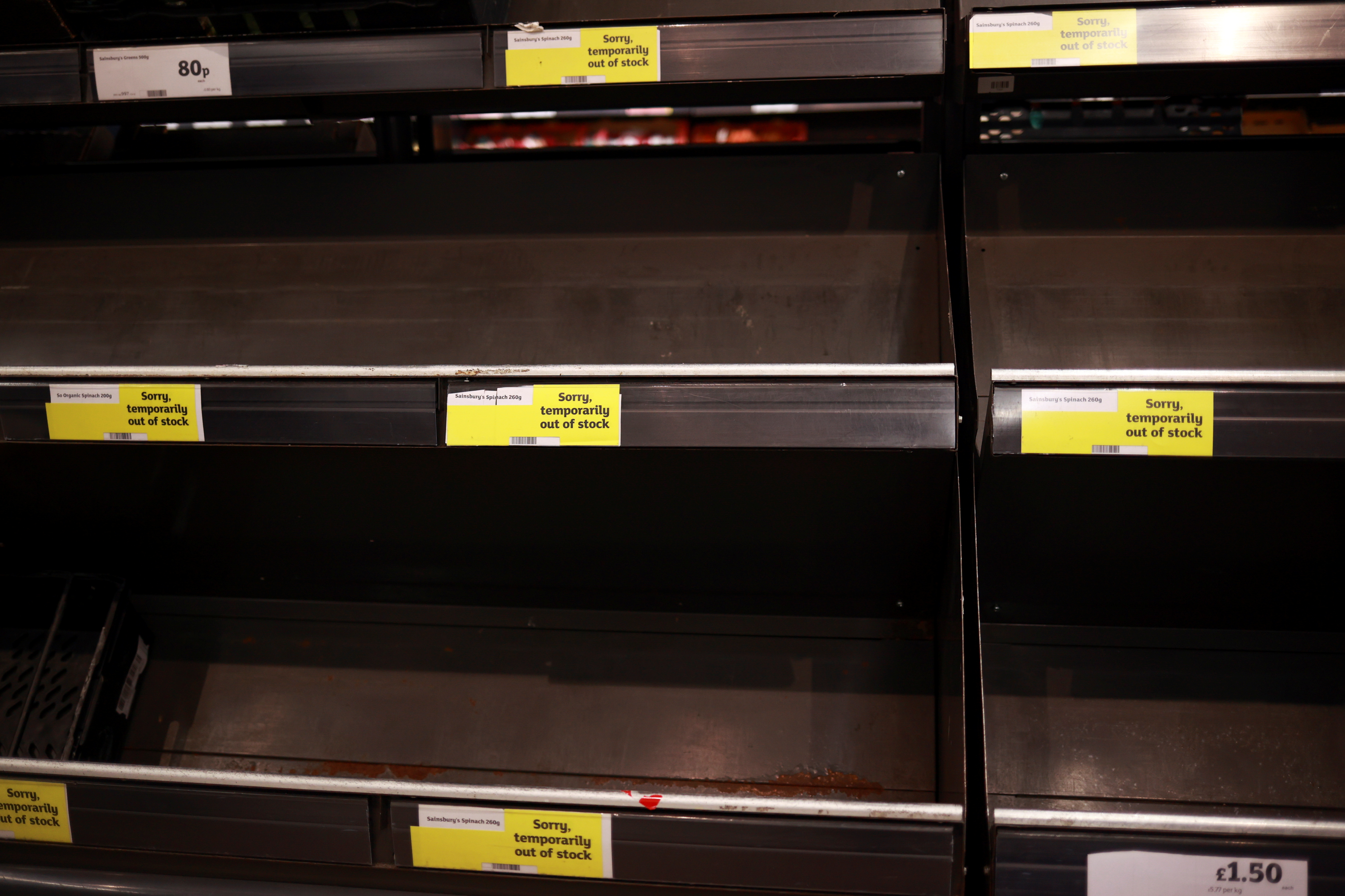 12月21日,英國倫敦商店內的空貨架。路透社