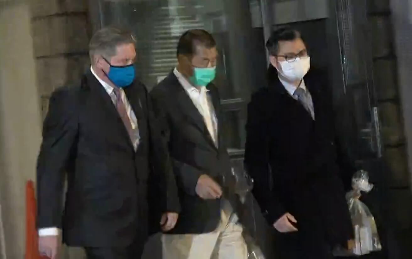 23日晚約11時,黎智英獲准保釋離開法院 (圖:網絡)