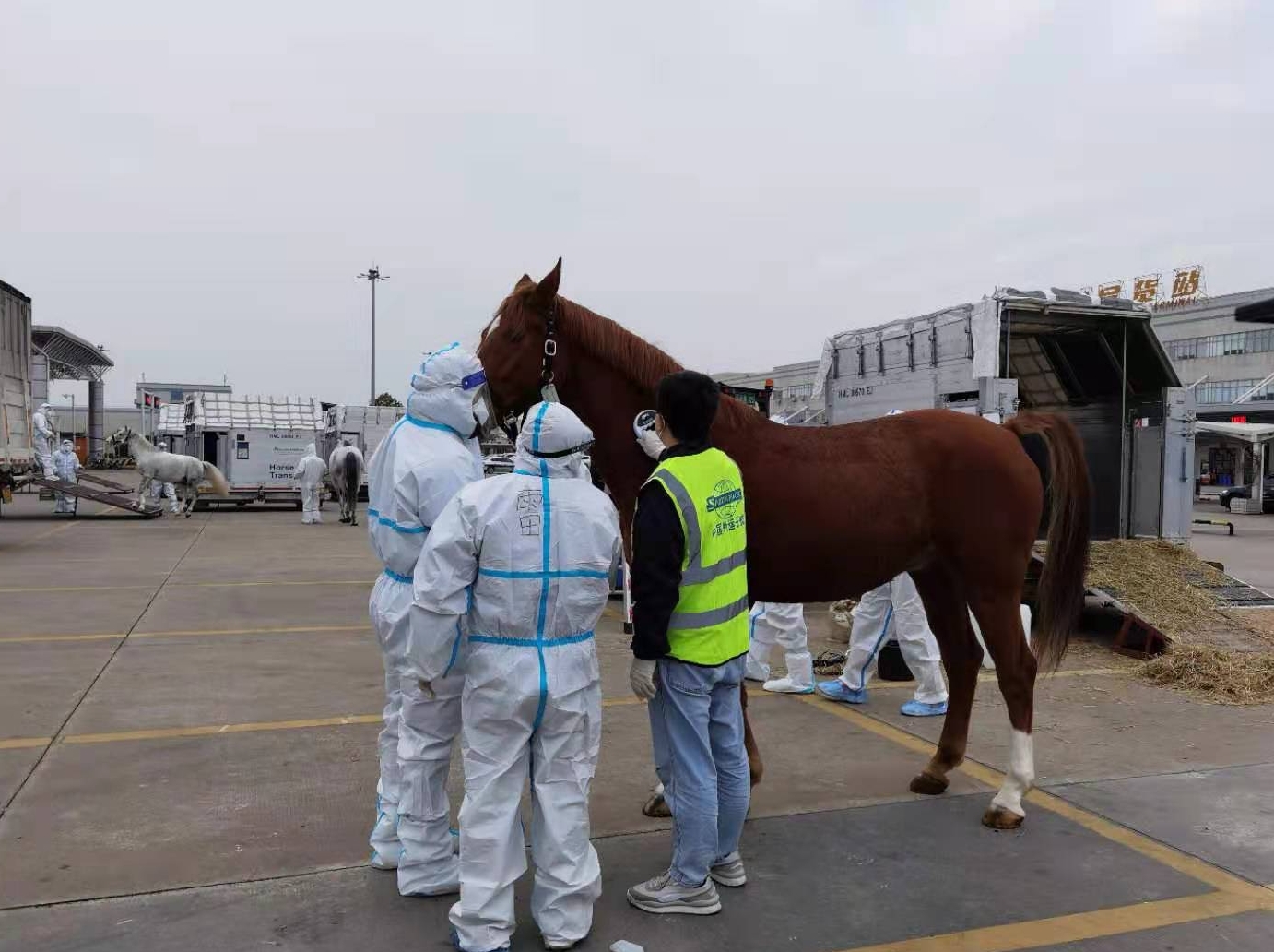 此次進境賽馬是新冠肺炎疫情發生以來廣州白雲機場口岸首批進境的大型活體動物。為做好口岸檢疫監管工作,廣州白雲機場海關針對企業通關需求以及大型活體動物進境的特殊性,量身定製監管計劃及應急處置方案,提前與場地經營單位溝通,加強對運輸工具、轉運車輛及暫存場地的防疫消毒工作,保障監管工作順暢開展,進口馬匹快速通關。