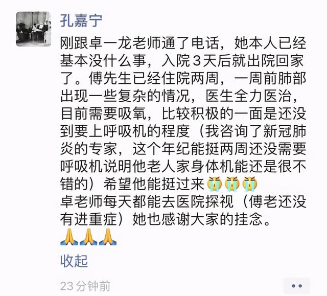 據澎湃新聞報道,著名鋼琴家傅聰在英國確診感染新冠病毒。傅聰的學生、英國皇家音樂學院中國籍教授孔嘉寧在其朋友圈裏寫道:傅先生已經住院兩周……希望他能挺過來。