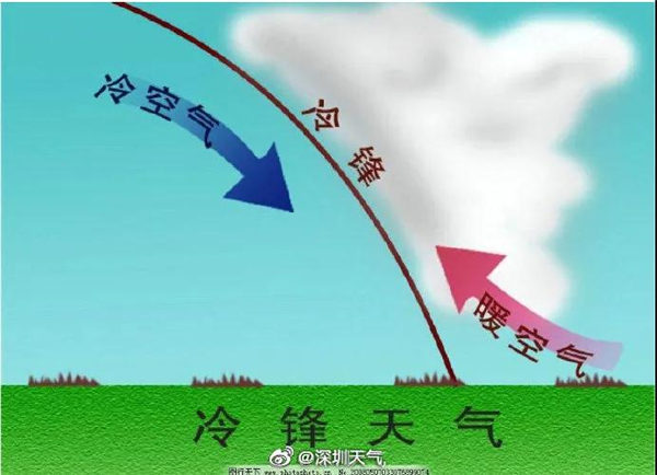 隨着冷鋒逼近,冷空氣把原來佔主導地位的暖氣團迅速擠壓到狹窄區域聚集導致增溫,氣象學上叫做「鋒前增溫」,等冷鋒過境時,氣溫就會下降。