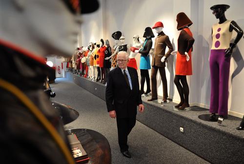 2013年11月27日,法國巴黎,皮爾·卡丹查看自己幾十年間設計的作品。(新華社)