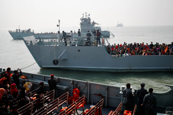 孟加拉周二出動4艘海軍船艦,協助將羅興亞穆斯林自擁擠的難民營遷至從本土搭船要3小時的荒涼小島。這是第2批,同時是最大一群的羅興亞難民,他們將面臨不確定的未來。