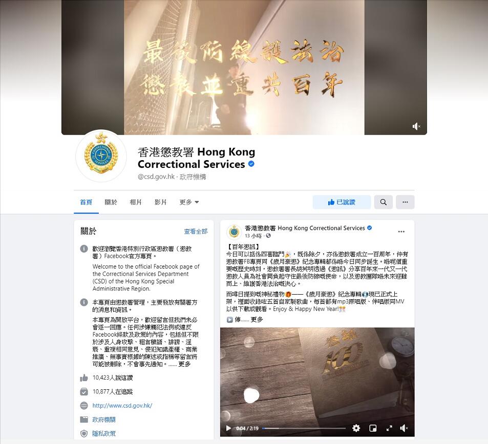 懲教署同時透露它們會推出官方社交平台專頁,以社交媒體平台加強與市民聯繫。懲教署指市民如欲了解詳情,可瀏覽www.Facebook.com/csd.gov.hk。(顶图说明:懲教署推出《歲月豪懲》紀念專輯,輯錄5首由懲教人員創作的歌曲。)