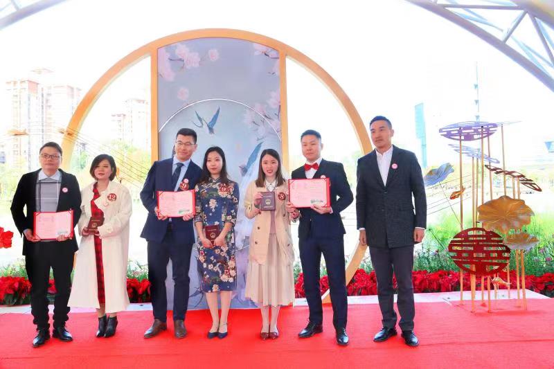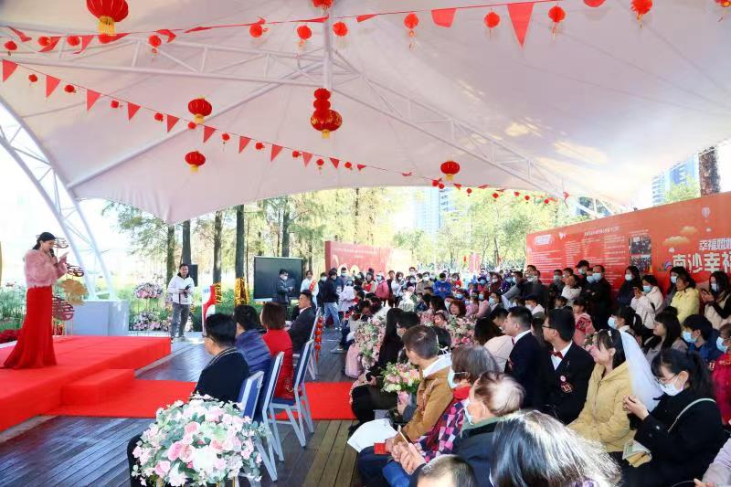 「我們自願結為夫妻,從今天開始,我們將共同肩負起婚姻賦予我們的責任和義務……」今天(1月1日)上午,在位於廣州市南沙區蕉門公園河畔新建成的新時代文明實踐婚姻家庭工作站、民政局戶外婚姻頒證服務點內,南沙區舉辦了揭幕儀式,並首次進行戶外集體頒證活動。15對新人宣讀結婚誓言,許下一生的諾言,特邀廣州市民政局、南沙區相關職能部門負責同志以及廣州市「文明家庭」代表作為頒證員,為新人們頒發結婚證。