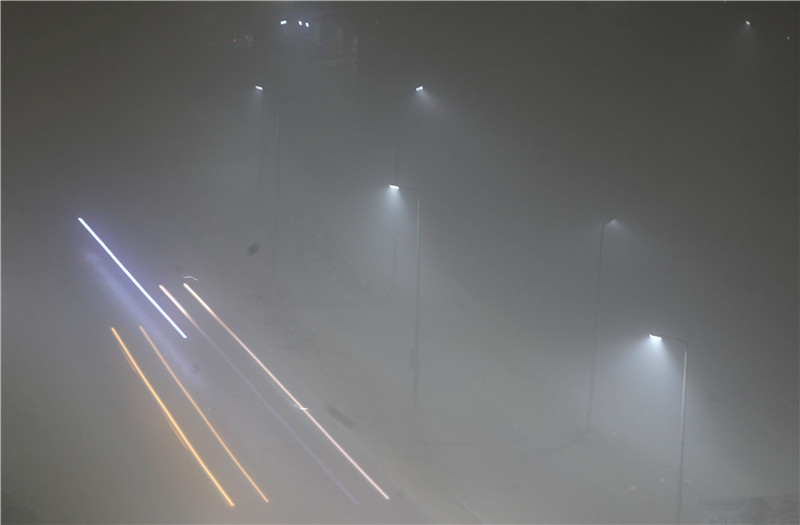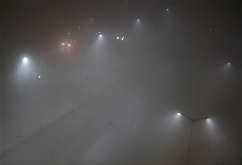 埃及開羅,汽車在濃霧中艱難穿行。