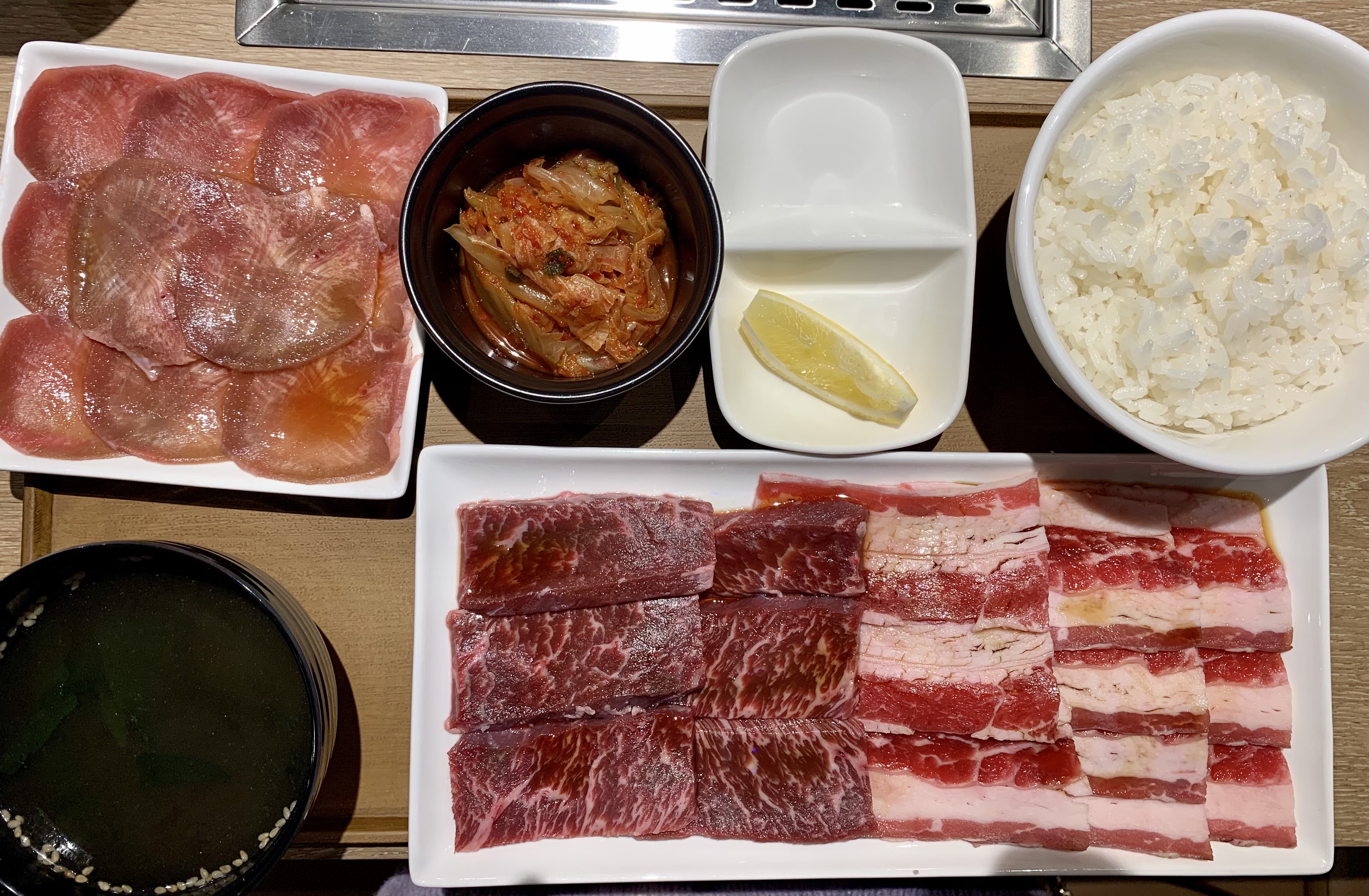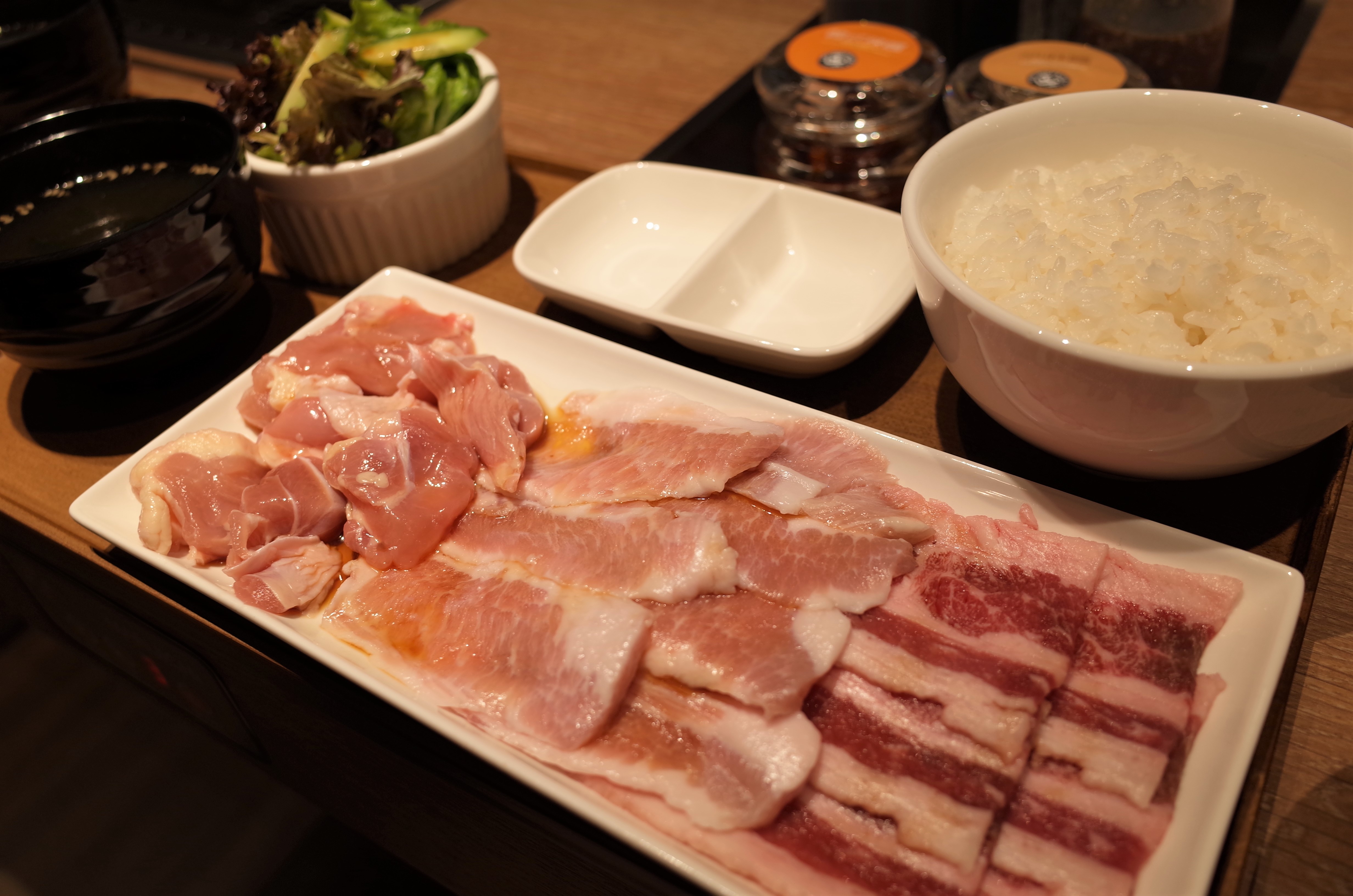 餐廳提供八款燒肉套餐及十款不同部位的肉類,分量由50g至300g不等,在燒肉界來說價格非常便宜,每款套餐價格大約百多元,最低是$48胸腹肉套餐(100g),於1月14日及1月15日更推出限時優惠,以$29便可享用,每日名額一百個,有興趣的可以提早去排隊。最貴的和牛扒套餐也只是$198(180g),肉味濃郁,以這價錢能品嘗到特級澳洲和牛燒肉,算是超值。
