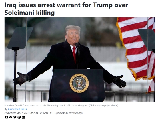 最高司法委員會是伊拉克最高司法機構。美聯社報道,這一逮捕令表明伊方指控特朗普犯「蓄意謀殺」罪,預期不可能得到執行,但在特朗普總統任期最後幾天具有「象徵意義」。