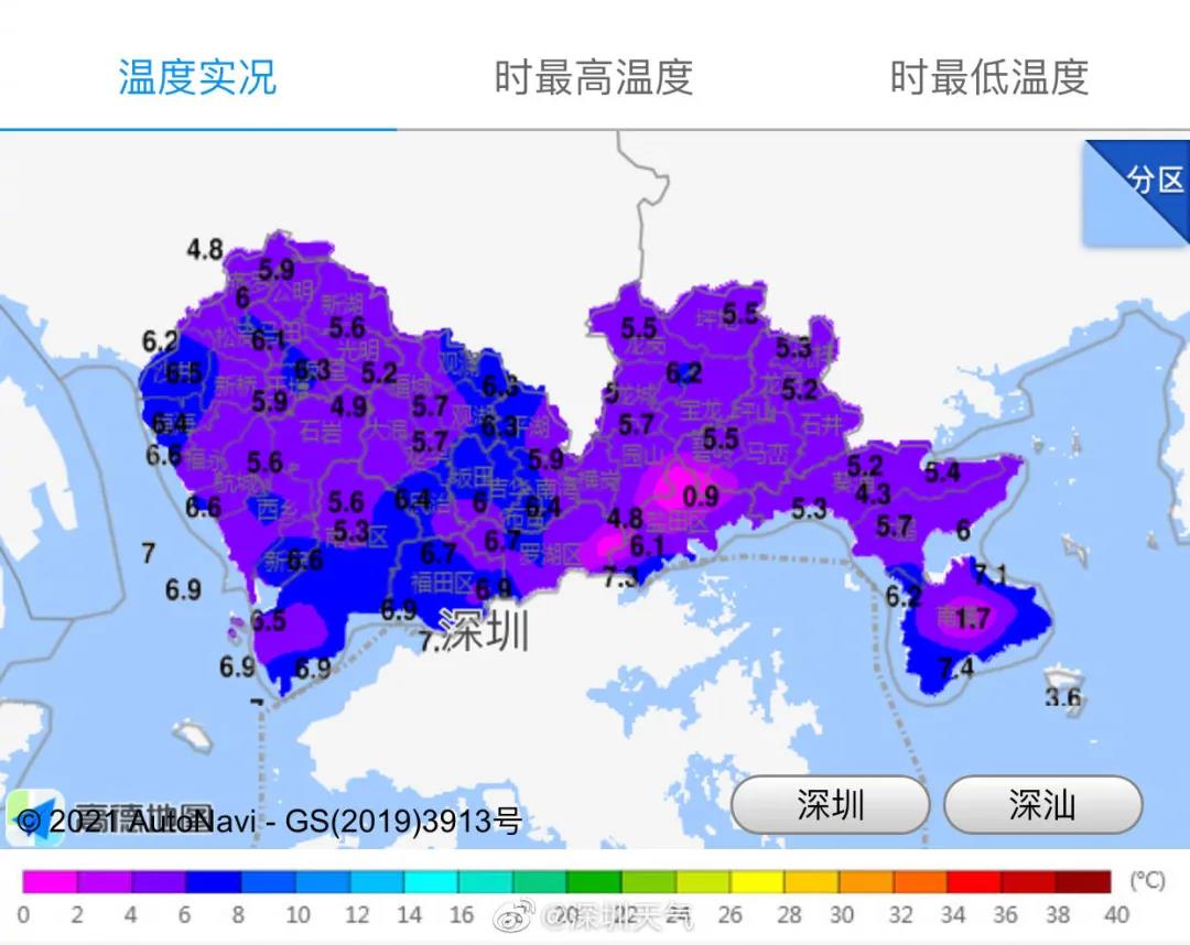 深圳市氣象台發布了寒冷橙色預警和分區大風預警,當前全市溫度普遍只有5-6℃,並有8-9級最大陣風。預計8-13日我市持續寒冷,信號可能持續7天。